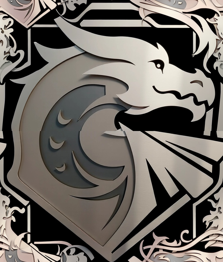 "prompt": "a metal embossed dragon, cinematic lighting",